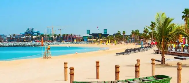 Jumeirah Beach Residences (JBR) Beach is a perfect spot for a family day out. Enjoy the golden sands, crystal-clear waters, and a vibrant promenade with street performers and art displays. Families can also enjoy beachside picnics, water activities, and breathtaking views of Ain Dubai.