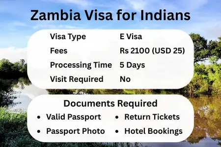 If you want to travel Zambia for tourism or business, you need to get Zambia visa from India. There are different types of Zambia visas available for Indians on the basis of purpose and number of entry. Indians can apply for Zambia e visa through their official website. In this you will get to know about steps for Zambia visa for Indian , Zambia visa requirements and fees.