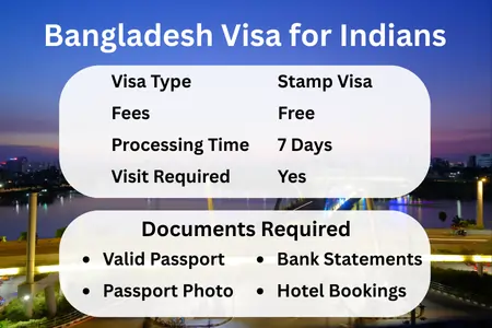 Bangladesh Visa is free for Indians. Indians have to pay only service charges of Rs 825.