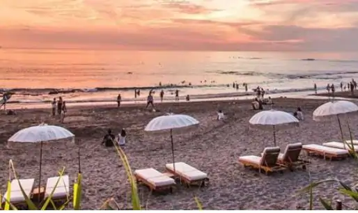 In the southern region of Tuban and Legion lies the lively beach named Kuta. A white fench surrounds the beach to block the sands to blow into the resorts. The beach is lively, littered and overly crowded in the evenings. It is also known as Sunset Beach.