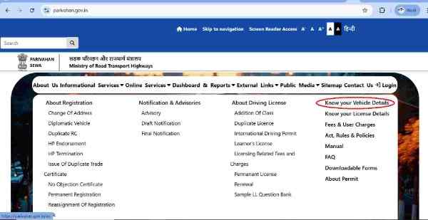 2. Go to Online Services and then click on Know Your Vehicle Details.