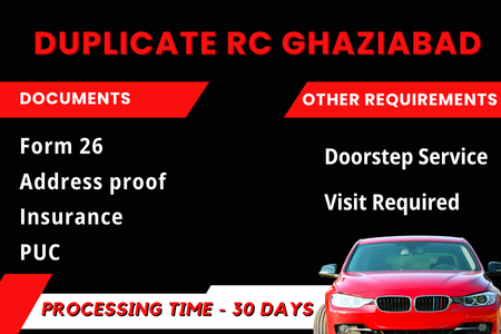 Duplicate RC process in Ghaziabad is not online completely . Application can be filled online. Fees can be paid online . However physical submission of application forms and supporting documents is required at concerned RTO in Ghaziabad. Also, the visit of registered owner of the vehicle at RTO is mandatory.